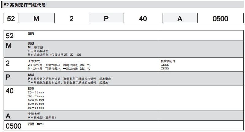2M2P25A0500,52G2P32A0500,52R2C40A0500,52G8C50A0500,52M8C25A0500,camozzi氣缸
