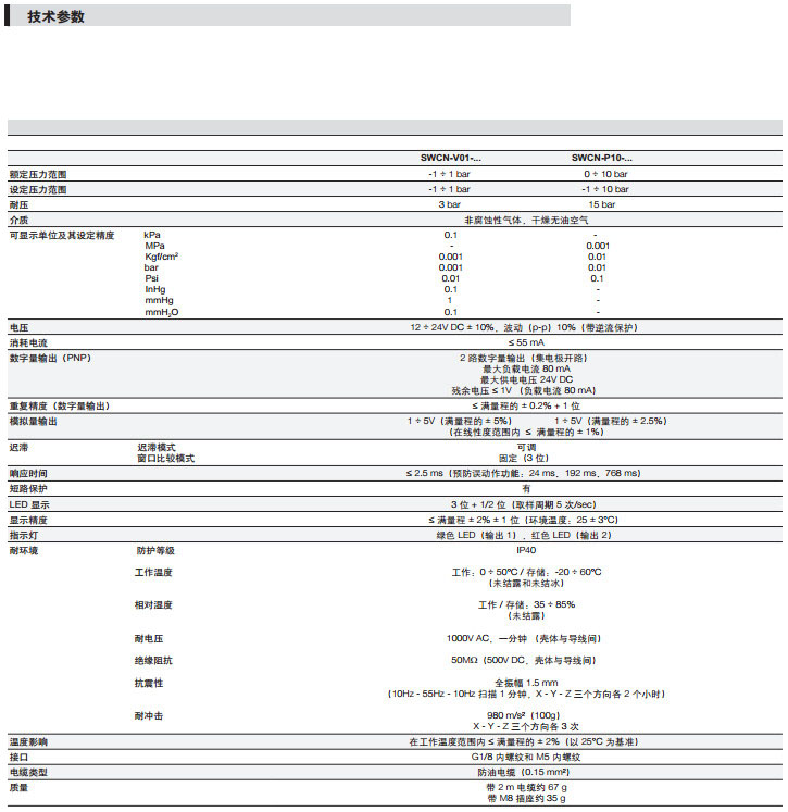 詳細(xì)信息 SWCN-V01-P3-2,SWCN-V01-P3-M,SWCN-P10-P4-2,SWCN-P10-P4-M,camozzi壓力開關(guān)