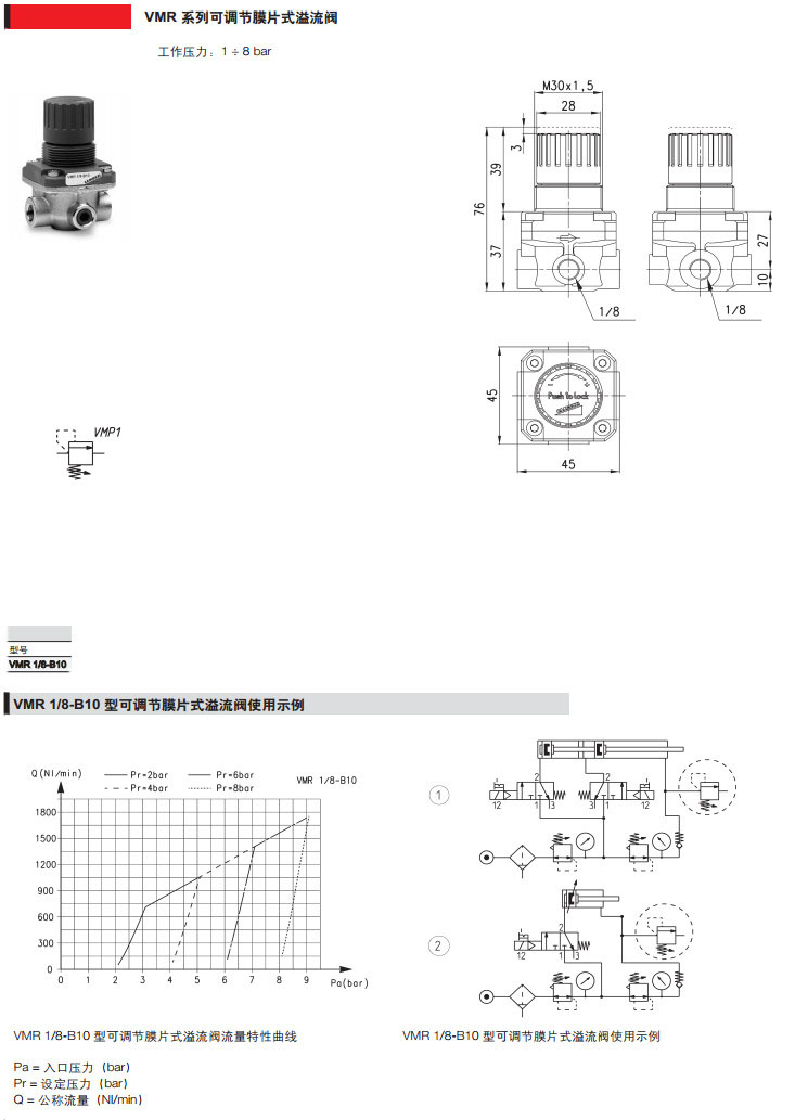 詳細信息 VMR1/8-B10,camozzi可調(diào)節(jié)膜片式溢流閥