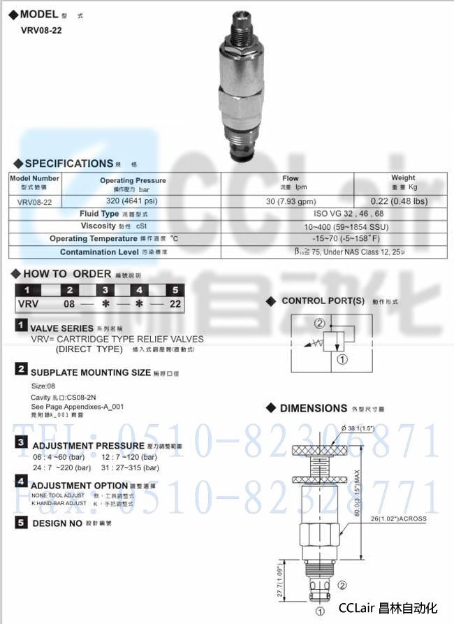 產(chǎn)品: 瀏覽次數(shù):608VRV08-22,插入式調(diào)壓閥