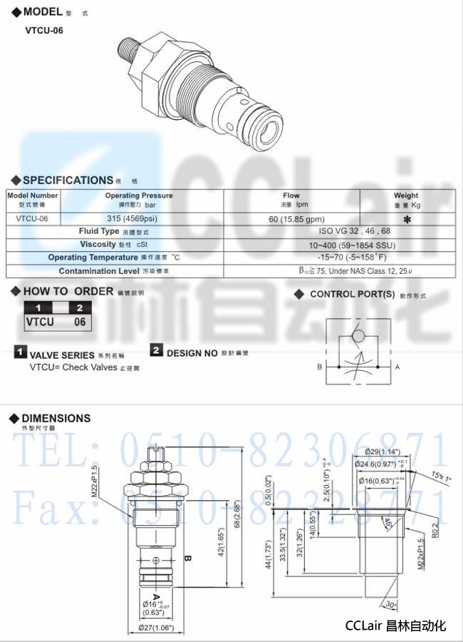 產(chǎn)品: 瀏覽次數(shù):567VTCU-06,插入式止逆閥,