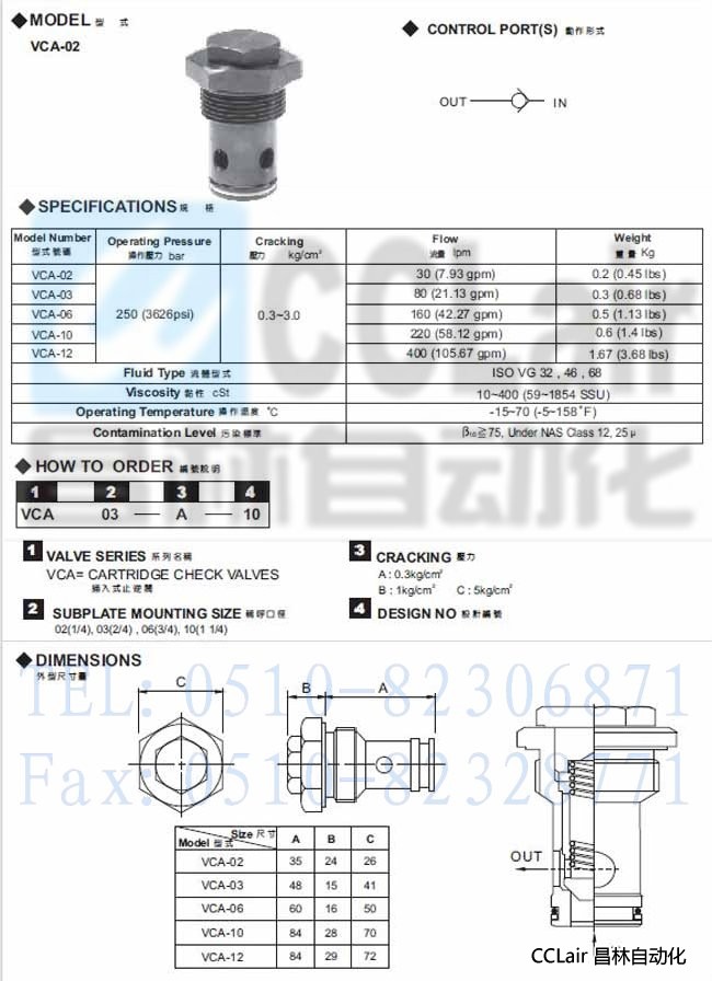 VCA-02,VCA-03,VCA-06,VCA-10,插入式止逆閥,