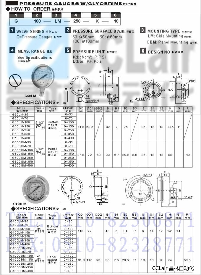 G60LM-350,G60LM-400,G60CBM-350,G60CBM-400,甘油式壓計(jì)