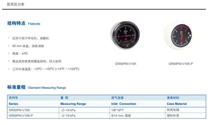 GR60PM-V10K,GR60PM-V10K-P,醫(yī)用壓力表