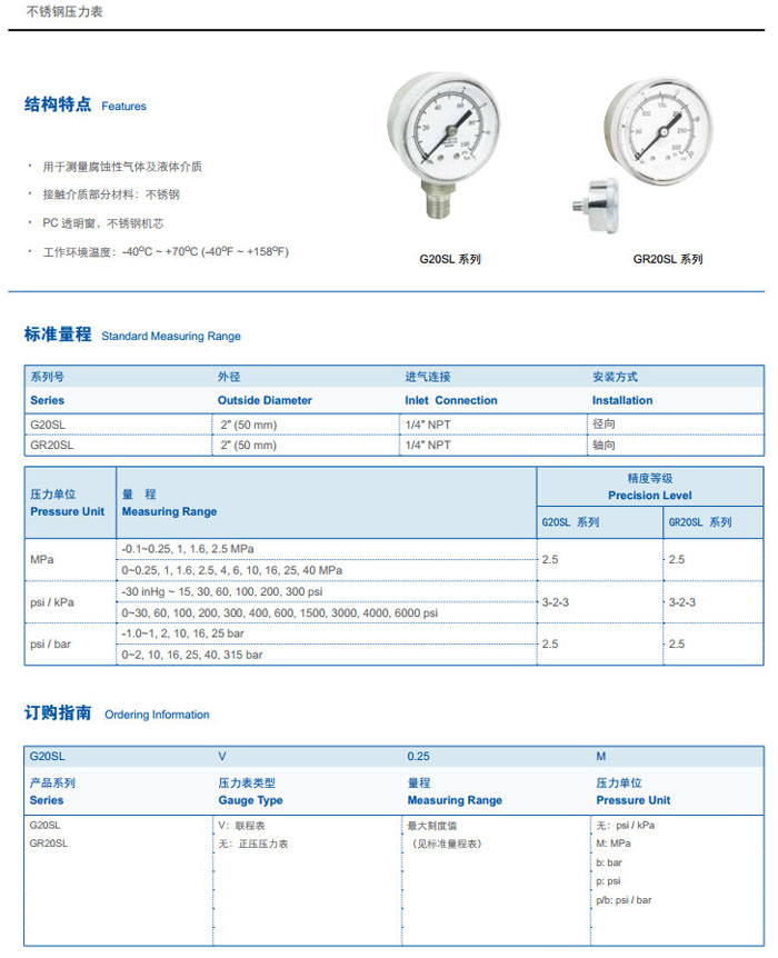 G20SLV2.5M,GR20SLV2.5M,G20SL2.5M,GR20SL2.5M,不銹鋼壓力表