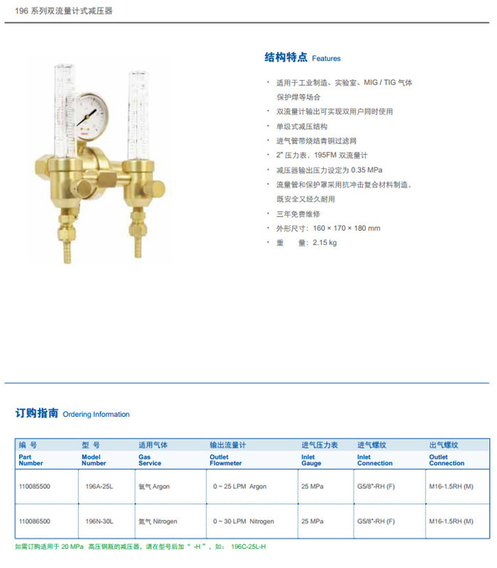 196A-25L,196N-30L,雙流量計式減壓器