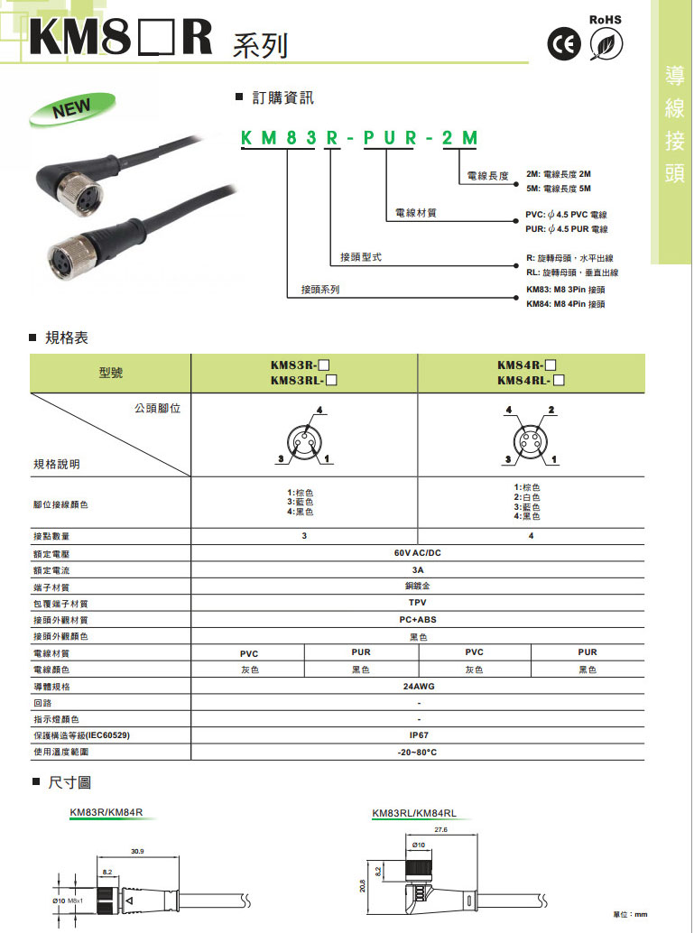 KM83RL-PVC-5M,KM84R-PUR-2M,KM84-PUR-5M,KM84R-PVC-2M,KM84R-PVC-5M,KM84RL-PUR-2M,,