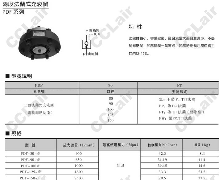 PDF-80,PDF-90,PDF-100,PDF-125,PDF-150,PDF-80-FP,PDF-90-FT,PDF-100-FW,二段法蘭式充液閥 |