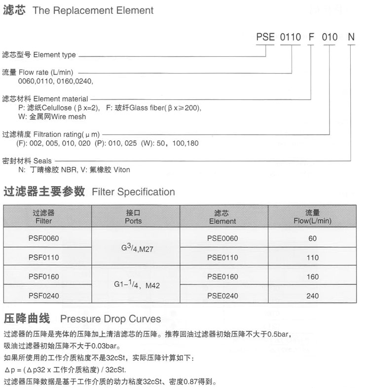 PSF0060,PSF0110,PSF0160,PSF0240,PSF0060F002NB12,PSF0240W040NM42,旋裝型低壓過(guò)濾器