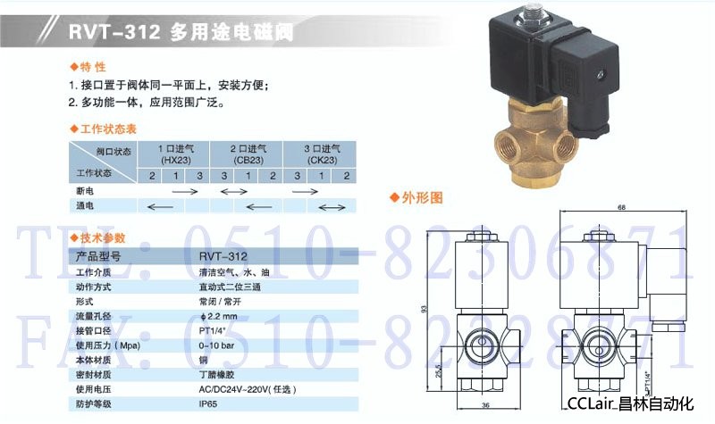 詳細(xì)信息 RVT-312,直動(dòng)二位三通電磁閥
