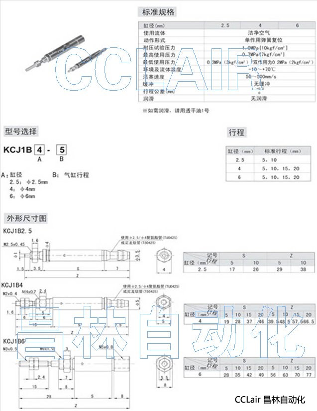 KCJ1B2.5-5,KCJ1B4-5,KCJ1B6-5,KCM2B20-75,KCM2L20-75,KCM2F20-75,氣缸