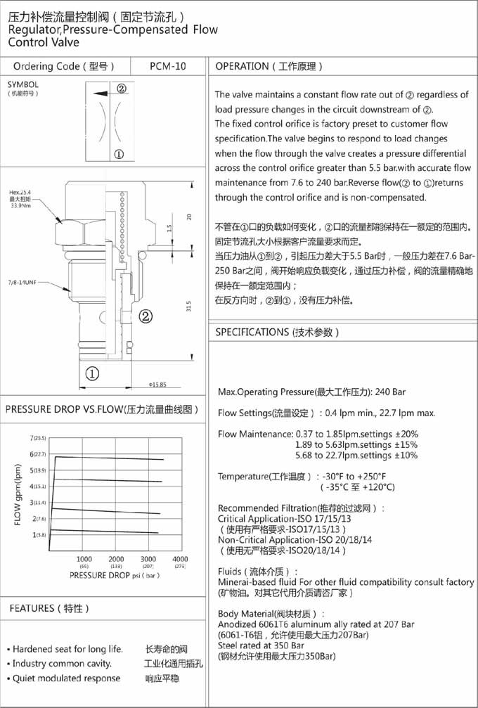 PCM-10,壓力補(bǔ)償流量控制閥