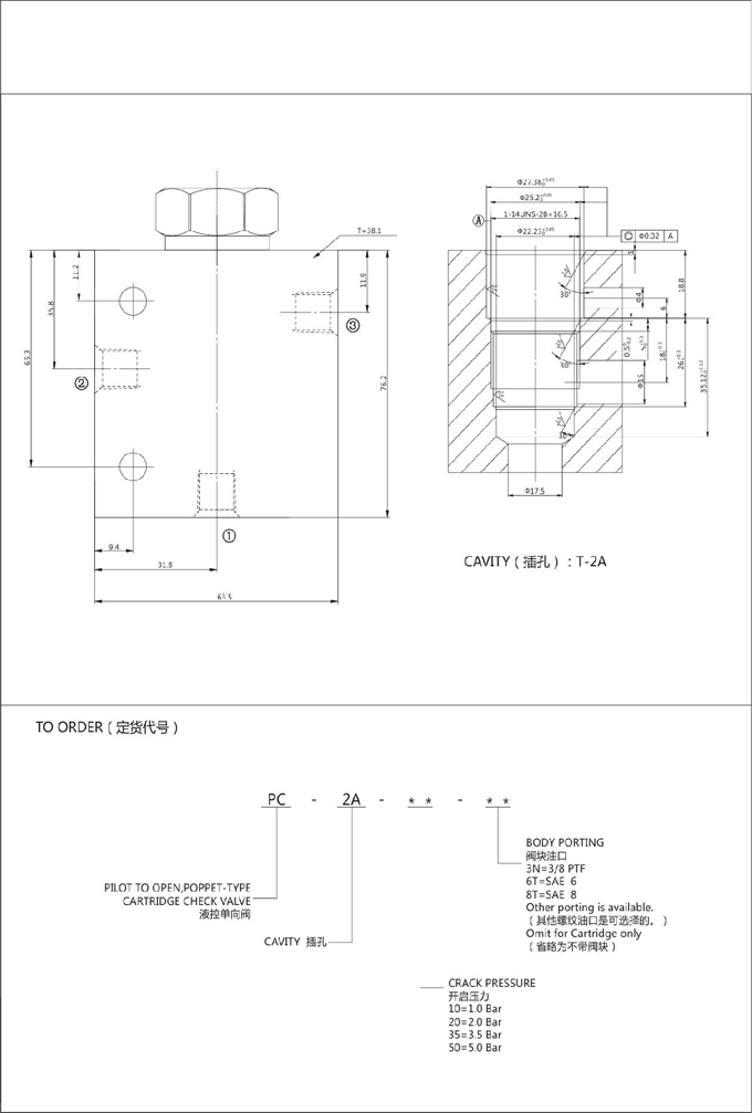 詳細信息 PC-2A-10,PC-2A-20,PC-2A-35,PC-2A-50,液控單向閥
