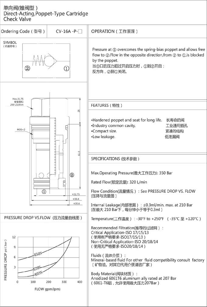 詳細(xì)信息 CV-16A-P-03,CV-16A-P-10,CV-16A-P-20,CV-16A-P-35,CV-16A-P-50,單向閥