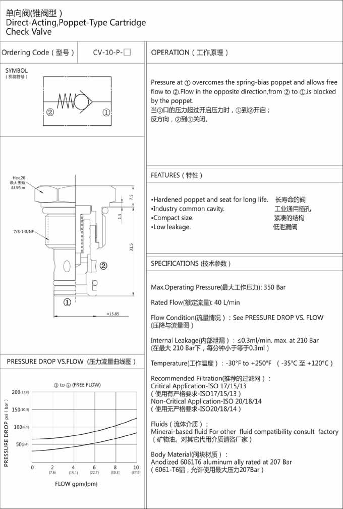 CV-10-B-10,CV-10-B-21,CV-10-B-28,CV-10-B-48,單向閥