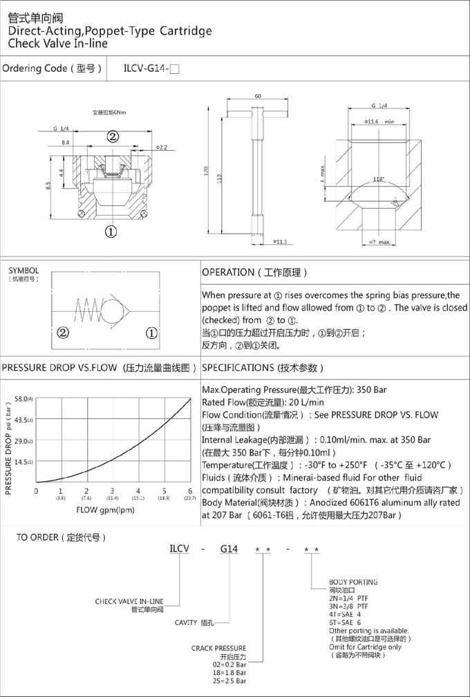 詳細(xì)信息 ILCV-G14-02,ILCV-G14-18,ILCV-G14-25,管式單向閥