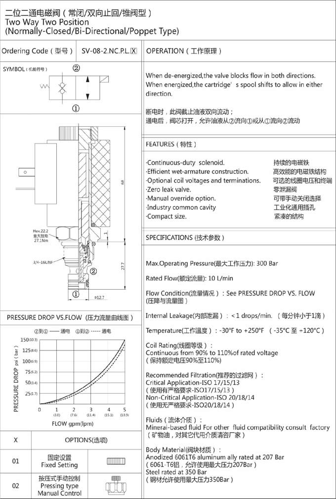 產(chǎn)品: 瀏覽次數(shù):494SV-08-2NCPL,二位二通電磁閥