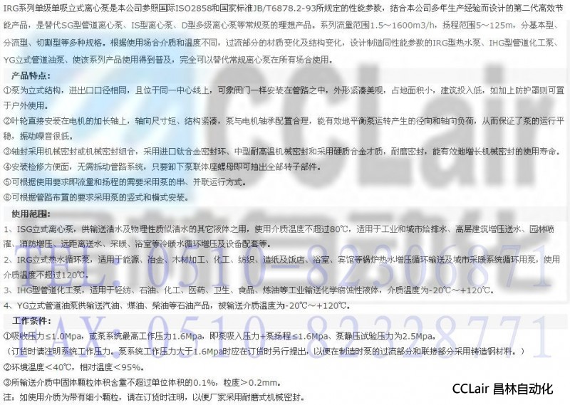 詳細信息 IRG100-250B,IRG100-315,IRG100-315A,IRG100-315B,IRG100-315C,立式管道離心泵