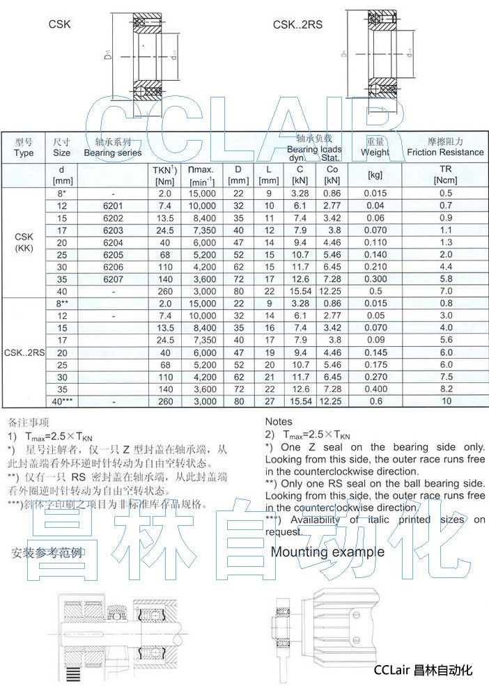 CSK8,CSK12,CSK15,CSK17,CSK20,CSK25,CSK8-2RS,CSK12-2RS,CSK15-2RS,CSK17-2RS,單向軸承