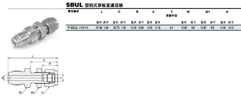 產(chǎn)品: 瀏覽次數(shù):497P-SBUL-1/4*1/4,短式穿板直通活接頭