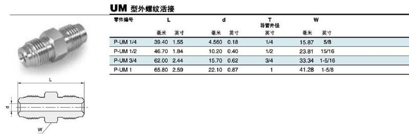詳細信息 P-UM1/4,P-UM1/2,P-UM3/4,P-UM1,外螺紋活接頭