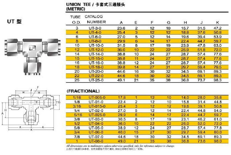 UT-3-0,UT-4-0,UT-6-0,UT-01-0,UT-015-0,UT-02-0,卡套式三通接頭