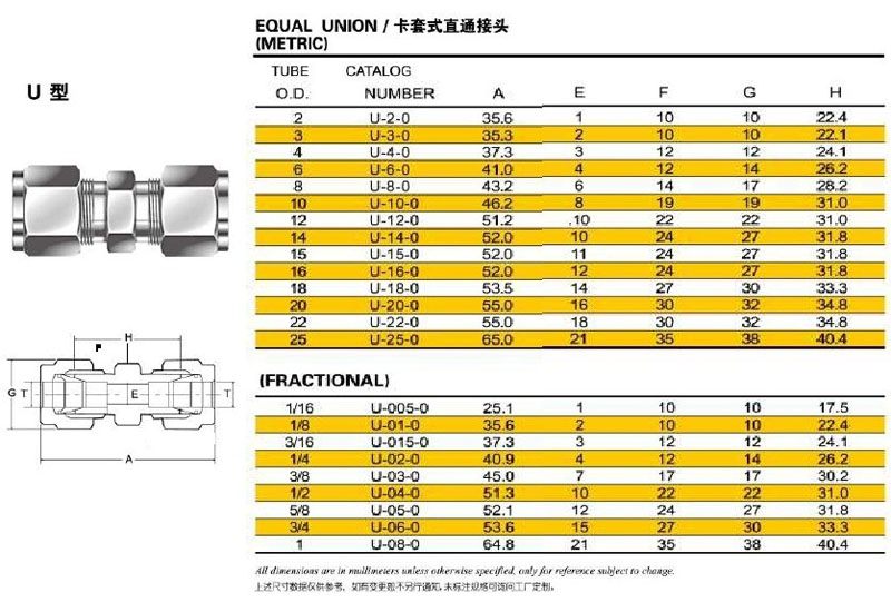U-2-0,U-3-0,U-4-0,U-6-0,U-01-0,U-015-0,U-02-0,卡套式直通接頭