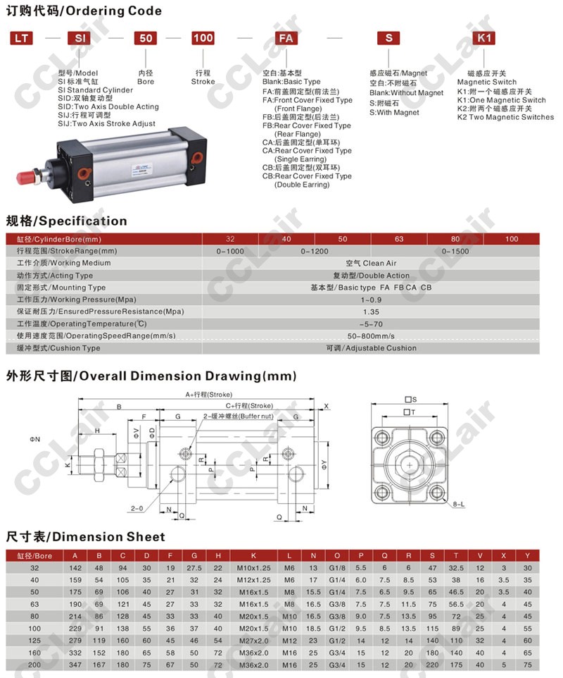 LTSI-32,LTSI-40,LTSI-50,LTSI-63,LTSI80,LTSI100,LTSI100×100,LTSI-100-100,標(biāo)準(zhǔn)氣缸
