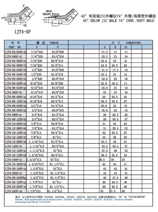 1JT4-04-02SP-SS,1JT4-04,1JT4-10,1JT4-16,1JT4-20,1JT4-24,45° |