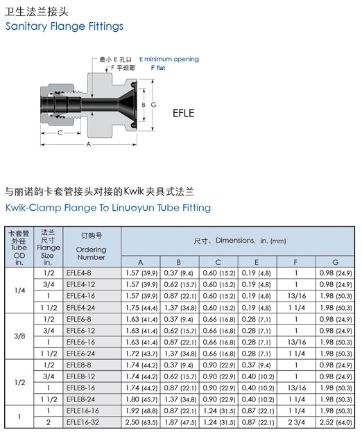 詳細信息 EFLE4-8,EFLE4-12,EFLE6-24,EFLE8-8,EFLE8-12,EFLE16-16,EFLE16-32,衛(wèi)生法蘭接頭