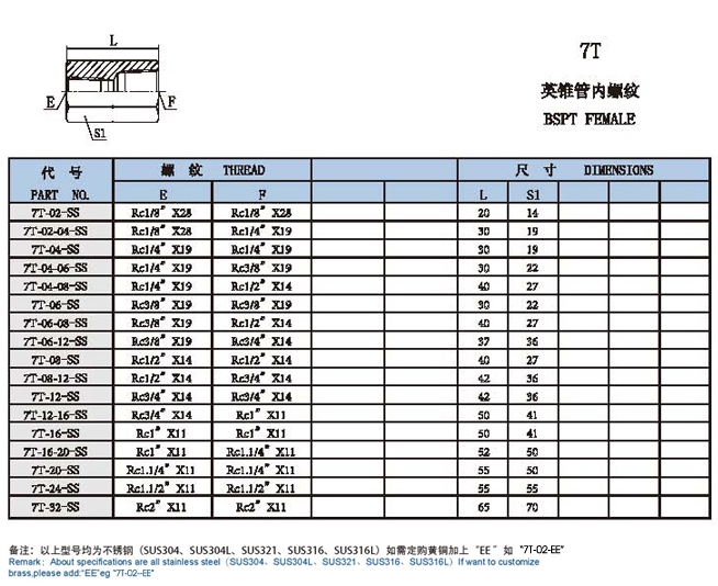 7T-02-SS,7T-04,7T-06,7T-08,7T-12,7T-16,7T-20,7T-24,7T-32,直通內(nèi)絲接頭