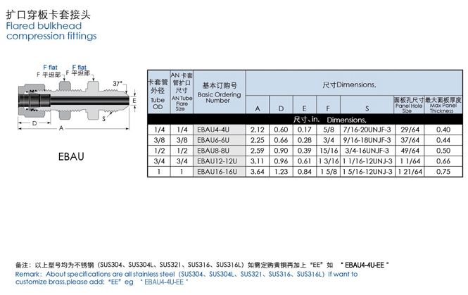 您當前的位置:首頁 » 產(chǎn)品&解決方案 » EBAU4-4U,EBAU6-6U,EBAU8-8U,EBAU12-12U,EBAU16-16U,直通擴口穿板卡套接頭