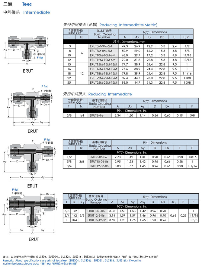 詳細信息 ERUT3M-3M-6M,ERUT6,ERUT8,ERUT10,ERUT12,ERUT16,ERUT15M-15M-12M,三通中間卡套接頭