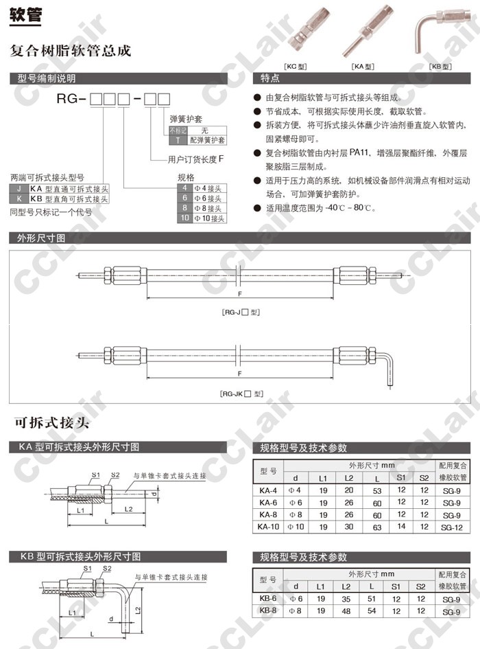 詳細(xì)信息 KA-4,KA-6,KA-8,KA-10,KB-6,KB-8,可拆式接頭