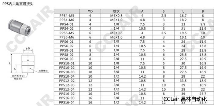詳細信息 PPS4,PPS6,PPS8,PPS10,PPS12,PPS16,內(nèi)六角直通接頭