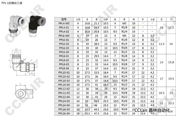PPL4,PPL6,PPL8,PPL10,PPL12,PPL14,PPL16,L型螺紋二通接頭