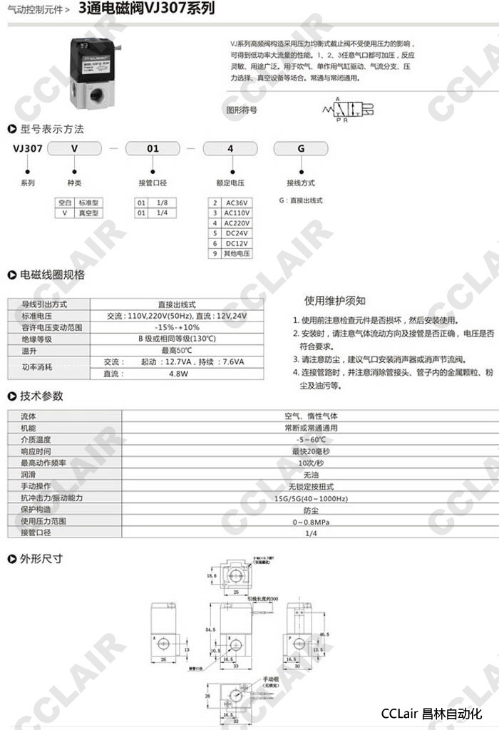 VJ307-01-2G,VJ307V-01-2G,VJ307-01-3G,VJ307V-01-3G,VJ307-01-4G,VJ307V-01-4G,3通電磁閥