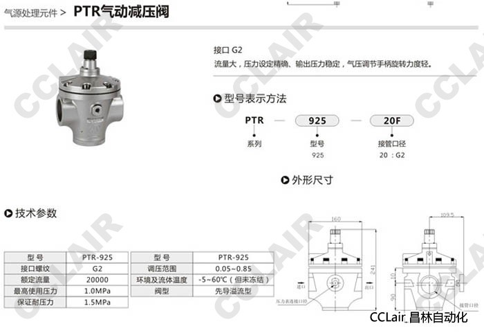 詳細(xì)信息 PTR-925-20F,氣動(dòng)減壓閥