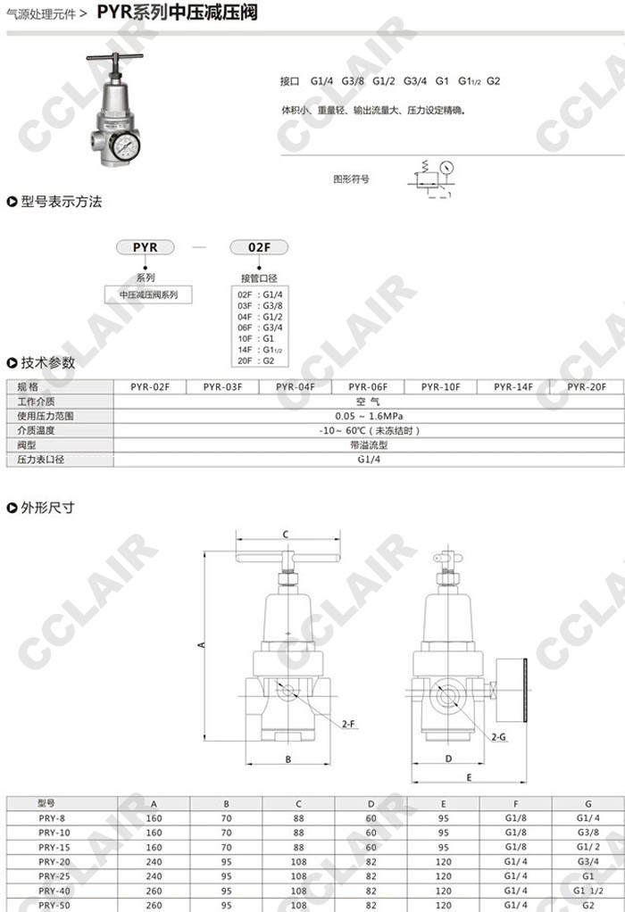 詳細(xì)信息 PYR-02F,PYR-03F,PYR-04F,PYR-06F,PYR-10F,PYR-14F,PYR-20F,氣動(dòng)中壓減壓閥