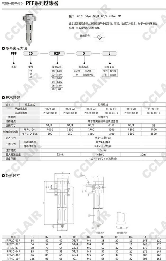 PFF40-01F,PFF40-02F,PFF40-03F,PFF40-04F,PFF40-06F,PFF40-10F,氣動(dòng)過(guò)濾器