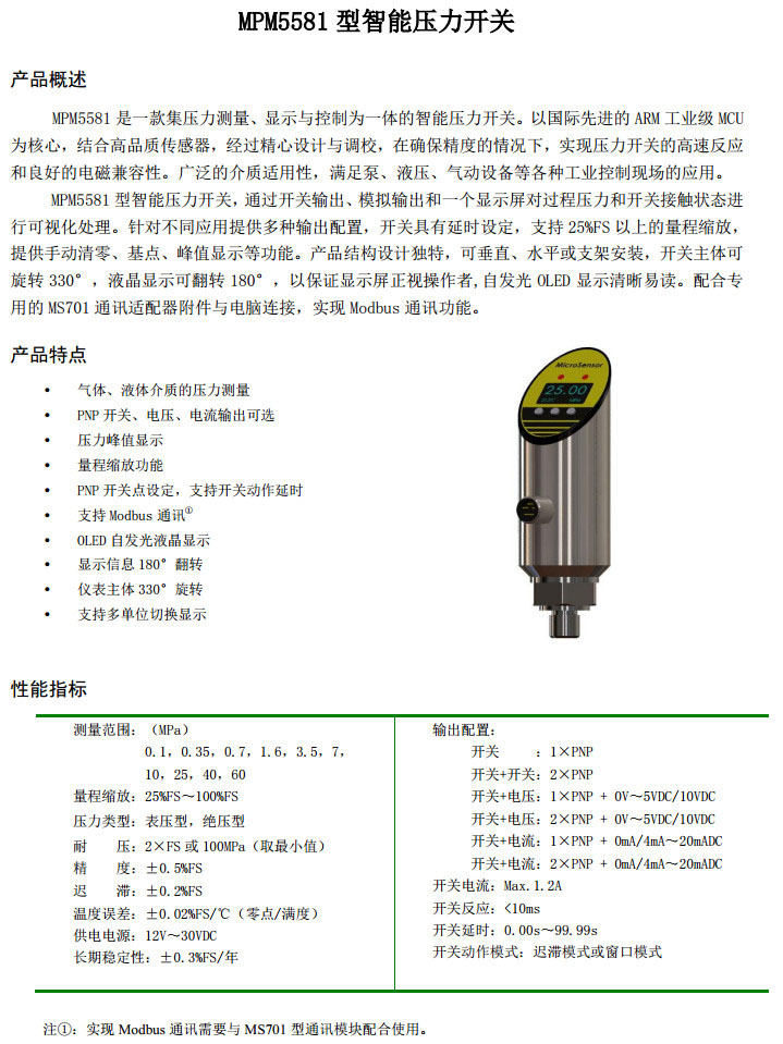 您當(dāng)前的位置:首頁 » 產(chǎn)品&解決方案 » MPM5581-G1,MPM5581-G2,MPM5581-G3,MPM5581-A1,MPM5581-A2,智能壓力開關(guān)