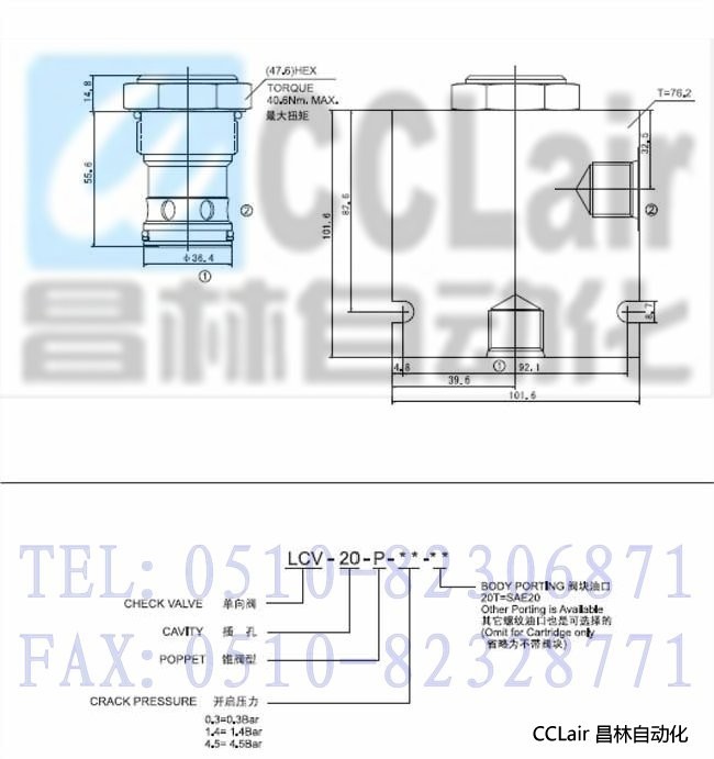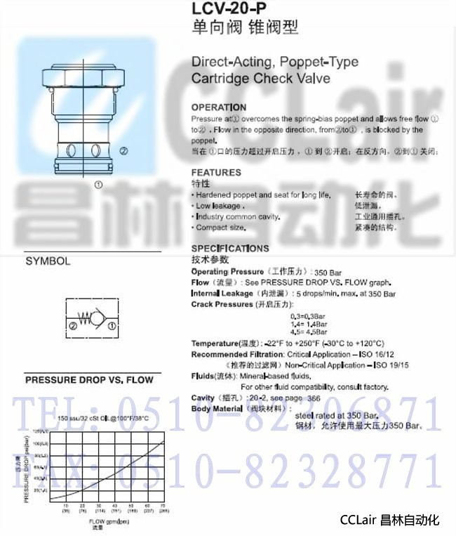 LCV-20-P-0.3,LCV-20-P-1.4,LCV-20-P-4.5,錐閥型單向閥,