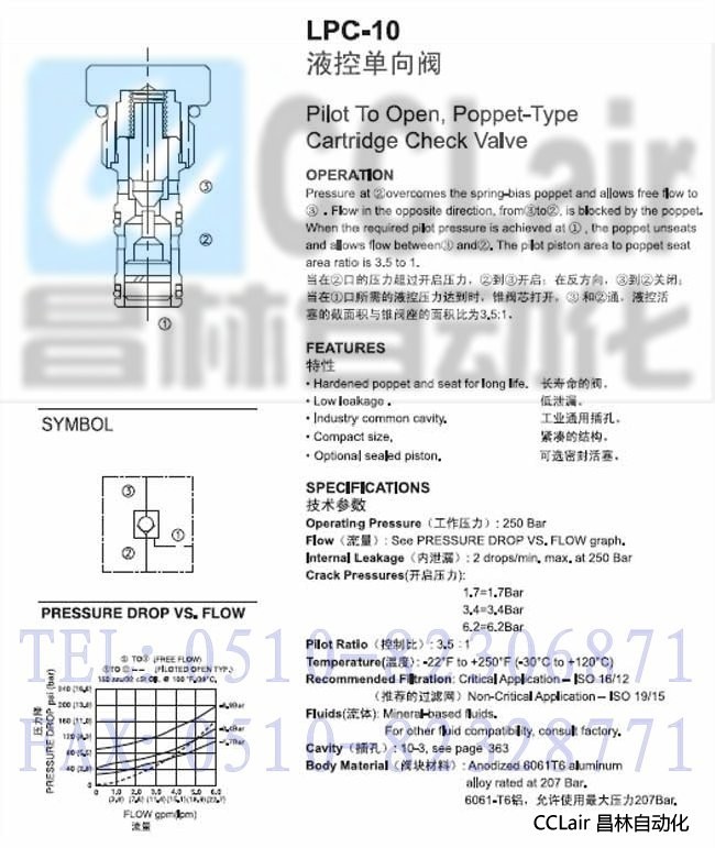 LPC-10-NS-1.7,LPC-10-NS-3.4,LPC-10-NS-6.2,液控單向閥,