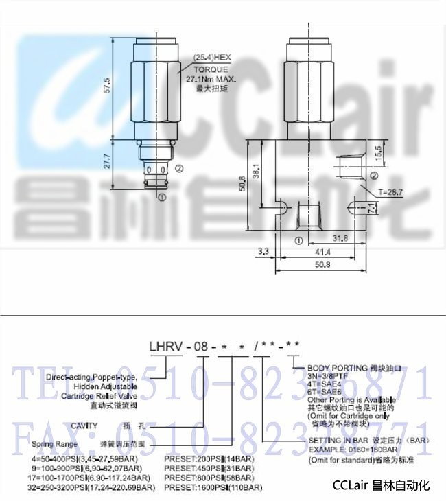 LHRV-08-17-3N,LHRV-08-17-4T,LHRV-08-17-6T,直動式溢流閥,