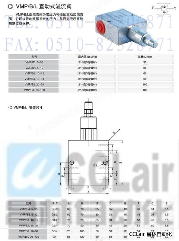 VMP/B/L 5-38,VMP/B/L 5-12,VMP/B/L 10-12,VMP/B/L 10-34,直動式溢流閥