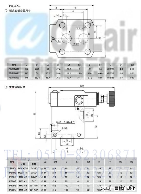 PB10,PBW10,PB20,PBW20,PB30,PBW30,先導(dǎo)式溢流閥(板式)