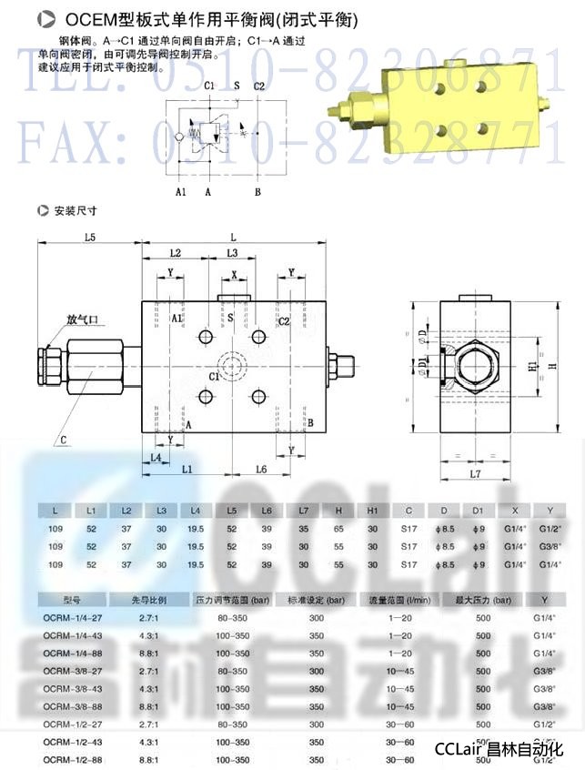產(chǎn)品: 瀏覽次數(shù):895OCEM-1/4-27,OCEM-1/4-43,OCEM-1/4-88,板式單作用平衡閥(閉式平衡)