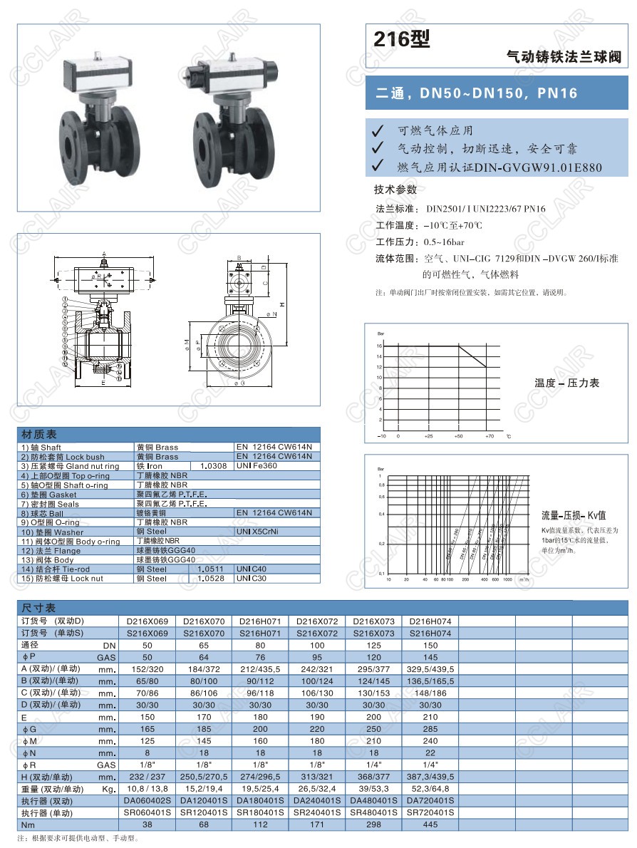 D216X069,D216X070,D216H071,S216X072,S216X073,S216H074,216型氣動鑄鐵法蘭球閥OMAL
