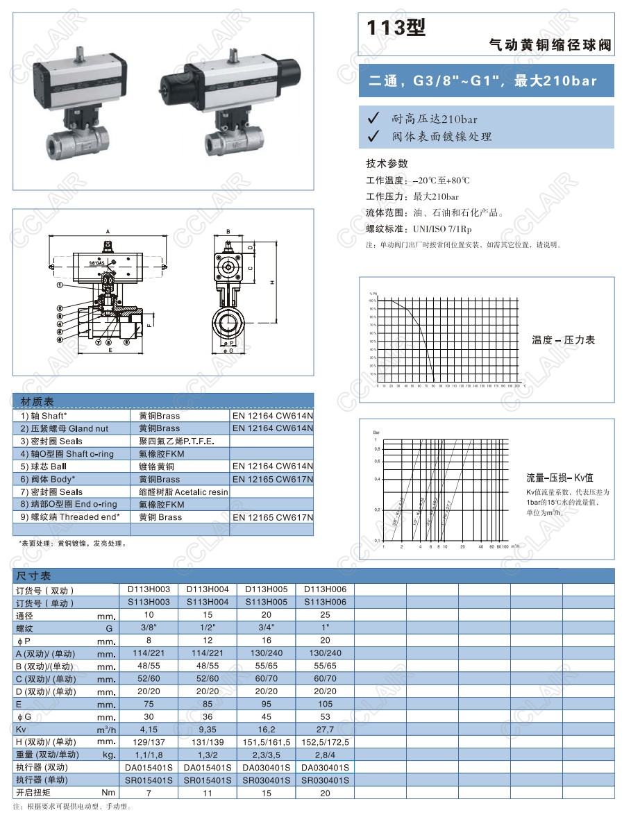 D113H003,D113H004,D113H005,S113H004,S113H005,S113H006,113型氣動(dòng)黃銅縮徑球閥OMAL