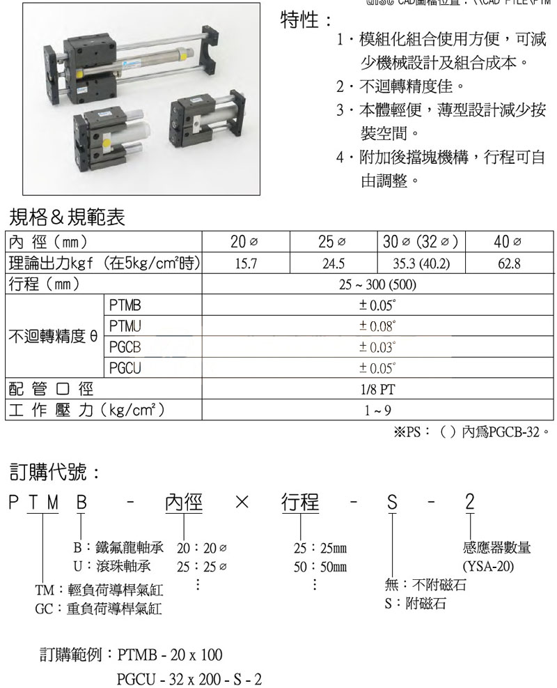 PTMB-20,PTMU-32,PGCB-20,PGCU-32,PTMB-40,PGCB-40,panix輕負(fù)荷導(dǎo)桿氣缸